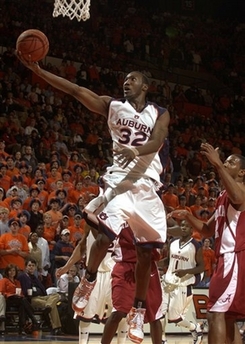 Auburn's Korvotney Barber puts up a shot against Alabama during the first half of a college basketball game, Tuesday, Jan. 23, 2007 in Auburn, Ala. Auburn won 81-57. (AP Photo/Todd J. Van Emst) |