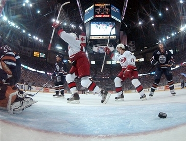 Edmonton won 2-1 on Ryan Smyth's disputed goal with just over two minutes remaining. The Hurricanes thought Smyth interfered with Ward in the crease.