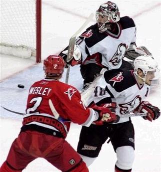 Notes:@ Buffalo D Teppo Numminen (lower body injury) didn't dress and Doug Janik took his place in the lineup. It was Janik's first game with the Sabres since the 2003-04 season. ... In the first period, a message on the scoreboard read: "The Carolina Hurricanes have won as many Super Bowls as the Buffalo Bills." ... Wesley got an assist on Whitney's second goal, his first point of the playoffs. He earned the second star for his efforts.