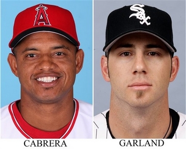 These are 2007 file photos showing Orlando Cabrera and Jon Garland. The White Sox traded right-hander Jon Garland to the Los Angeles Angels on Monday nov. 19, 2007 for shortstop Orlando Cabrera. (AP Photo/File) |