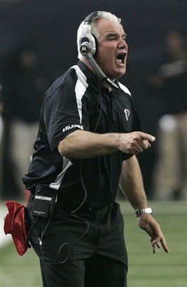 Atlanta Falcons head coach Mike Smith yells from the sidelines during an NFL football game against the Denver Broncos in Atlanta, Sunday, Nov. 16, 2008. Denver won 24-20. (AP) |