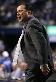 Kentucky basketball head coach Billy Gillispie reacts to a call during the second half of Kentucky's 67-40 win over Central Arkansas at Rupp Arena in Lexington, Ky., on Tuesday, Nov. 6, 2007. (AP Photo/James Crisp) |