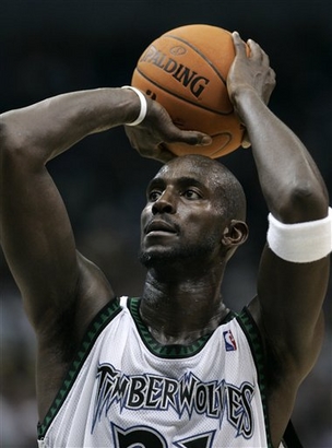 Minnesota Timberwolves forward Kevin Garnett prepares to shoot a free throw during the fourth quarter of a basketball game against the Sacramento Kings in Minneapolis, in this Nov. 1, 2006 file photo. Timberwolves All-Star Garnett is out indefinitely with an injured right quadriceps.