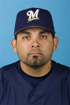 This is a 2007 file photo of catcher Johnny Estrada of the Milwaukee Brewers baseball team. The New York Mets acquired Estrada from the Brewers for reliever Guillermo Mota on Tuesday, Nov. 20, 2007, moving quickly to plug their hole at catcher after talks with Yorvit Torrealba collapsed. (AP Photo/Morry Gash) |