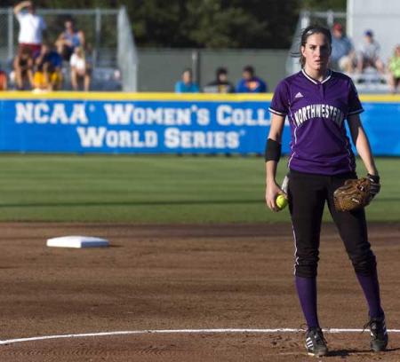 Junior Eileen Canney stares down the next hitter during the second game of the WCWS. (photo courtesy of nusports.com) |