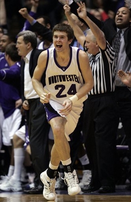 Northwestern's John Shuma smiles after scoring the game-winning shot against Ohio State in the second half of an NCAA college basketball game, Wednesday, Feb. 18, 2009, in Evanston, Ill. Northwestern won 72-69. (AP) |