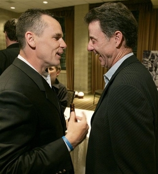 Former co-captain of the Providence College Friars basketball team Billy Donovan, left, chats with a former coach of the team, Rick Pitino, in Providence, R.I., in this May 11, 2007 file photo, at a 20th-anniversary celebrations of the 1986-87 team's trip to the Final Four. (AP Photo/Steven Senne) |