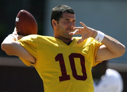 Southern California, Los Angeles' football quarterback John David Booty practices Thursday, Aug. 3, 2006, in Los Angeles. (AP Photo/Ric Francis) |