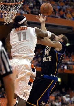 Rautins fed Harris for a driving layup along the baseline and followed with three 3-pointers in a 2-minute span to give the Orange a 72-59 lead with 5:38 left.