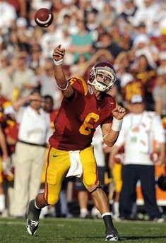 Southern California quarterback Mark Sanchez throws a pass during the first quarter of the Rose Bowl NCAA college football game against Penn State in Pasadena, Calif., Thursday, Jan. 1, 2009.