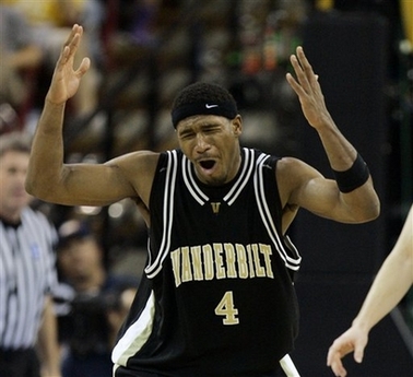 Vanderbilt's Derrick Byars reacts to a shot in the second half against Washington State during the second round of the NCAA East Regional basketball tournament at Arco Arena in Sacramento, Calif., Saturday, March 17, 2007. (AP Photo/Marcio Jose Sanchez) |